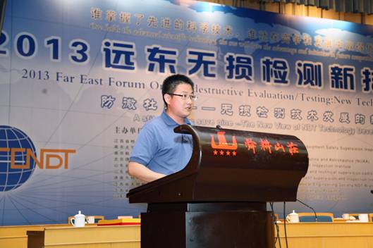 我司总工程师纪轩荣先生代表国内无损检测企业家做了主题发言,向参加本次远东论坛的专家、学者们对多浦乐公司给予的支持和帮助表达了诚挚的谢意,并热诚希望与各位专家、学者一起攻关检测难题、提高仪器和探头产品的研发生产水平、推广并普及超声相控阵检测新技术。
