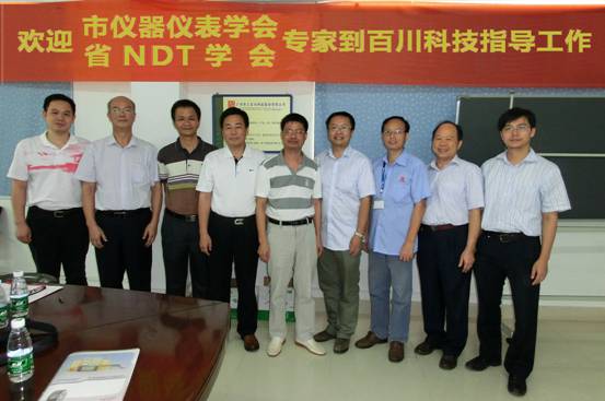 广州华工百川科技股份有限公司成立于2000年,经过13年时间,从成立500万注册资金,到现在固定资产已达10亿。公司在高分子材料专用成型装备、线上检测装备等产品综合实力处于国内领先地位。为更好地落实学会为会员单位服务工作,8月20日广东省机械工程学会NDT分会联合广州市仪器仪表学会组织专家队伍,包括刘桂雄教授、程韬波研究员、王小辉高工、李达桂高工、聂有传高工、洪晓斌副研究员及曹永军责任研究员等到公司调研。