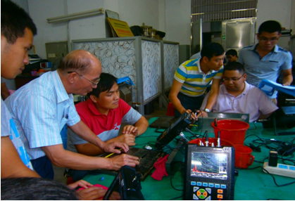 广东NDT学会对本次培训工作非常重视,派出学会资深专家副理事长黄建明高工、理事聂有传高工、胡城高工及李咏梅高工等老师任教,由长期从事UT检测工作具有丰富经验的张河清、聂有传、黄建明、胡城、麦标辉、张建彬等老师指导检测实验操作练习。经过15天的基础理论、专业知识、实操练习,使所有参加培训学员的UT检测技能都得到提高,满足企业产品质量检验需要。
